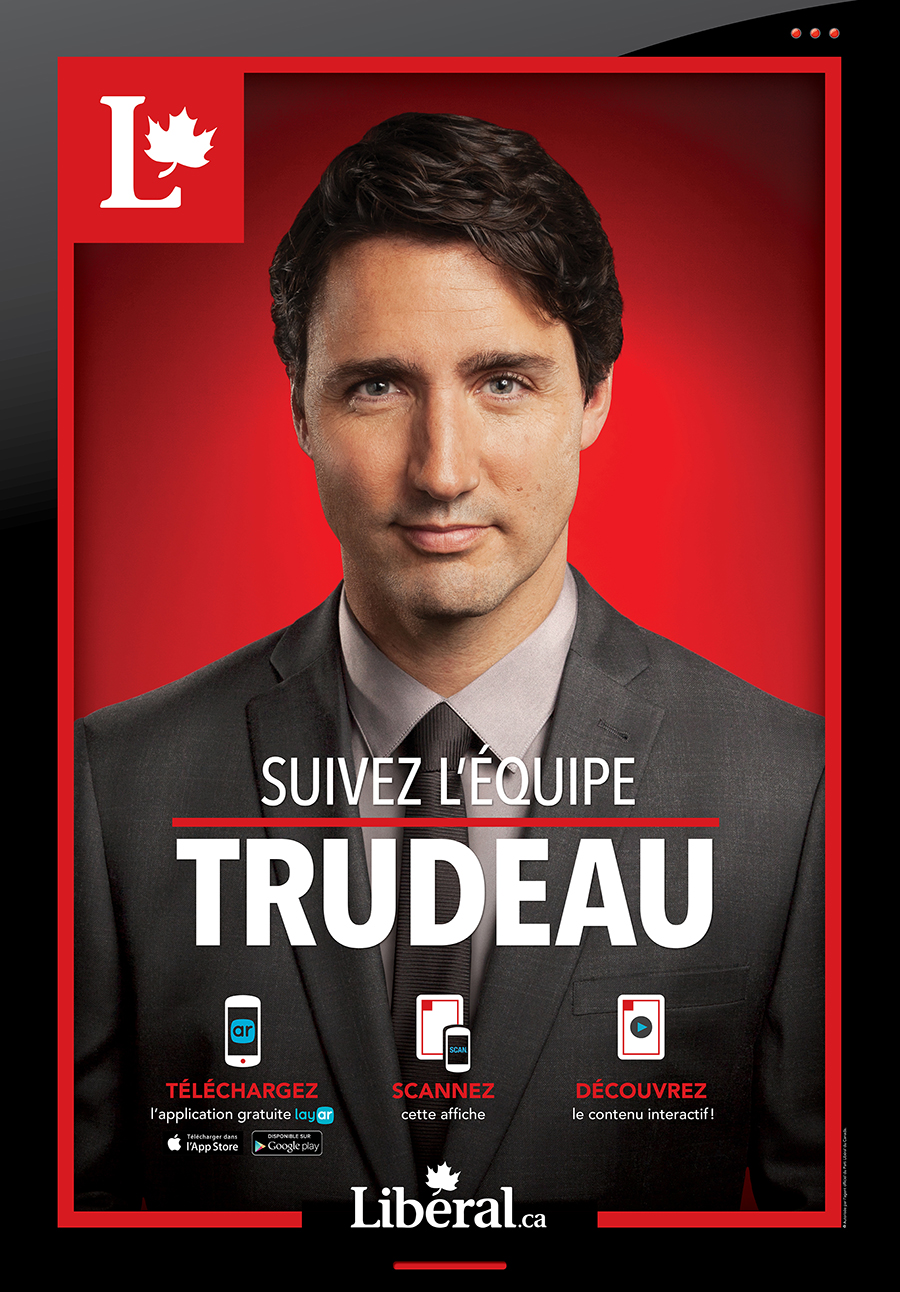 Affiche électorale pour Justin Trudeau avec réalité augmentée.