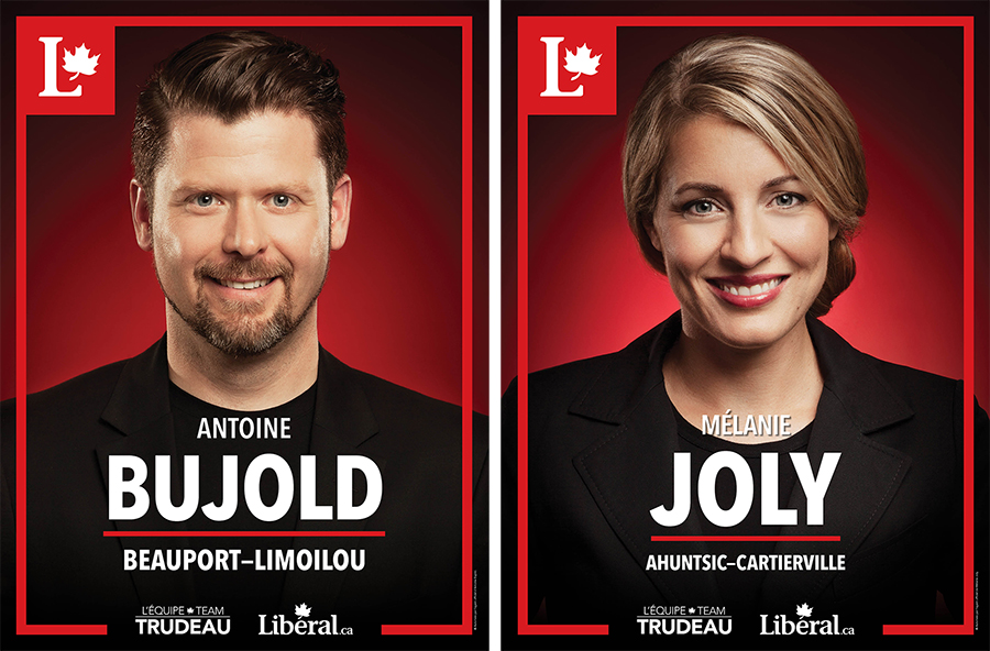 Affiches électorales pour les candidats du Parti Libéral du Canada.